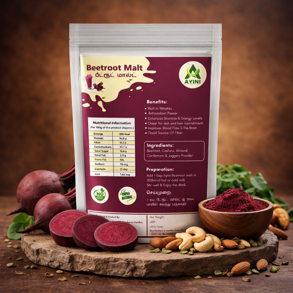 Ayini Beetroot Malt is a vibrant and nourishing beverage mix made from dehydrated beetroot and other wholesome ingredients. It offers a convenient way to enjoy the powerful benefits of beetroot as part of your daily diet.